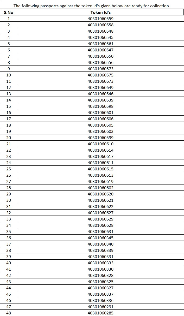 The passports against the following token Id’s are ready for collection at the Consulate General of Pakistan, Manchester from Tuesday, , 17th February, 2026.